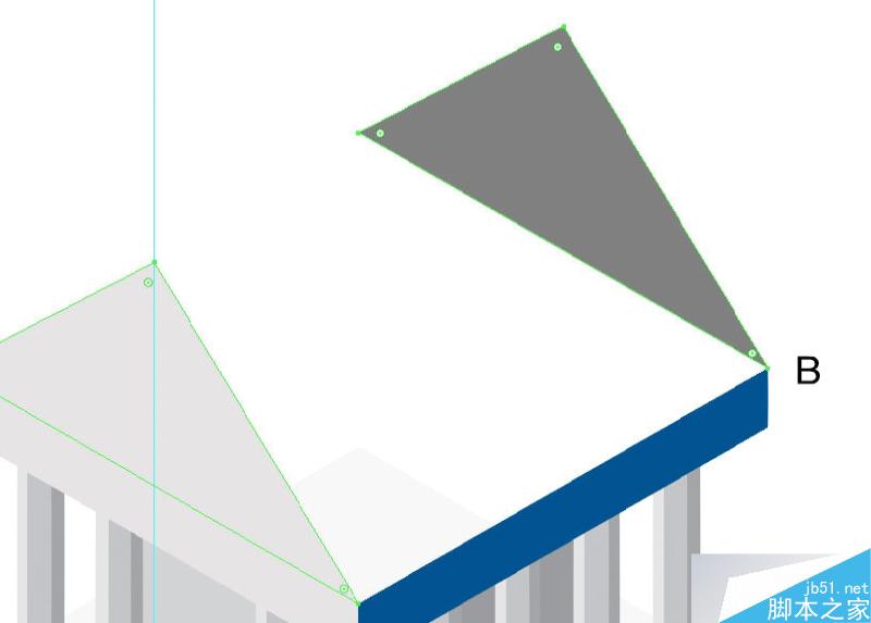选择屋顶的左侧,然后去对象>路径>添加锚点.现在放置在A点的垂直导向.
