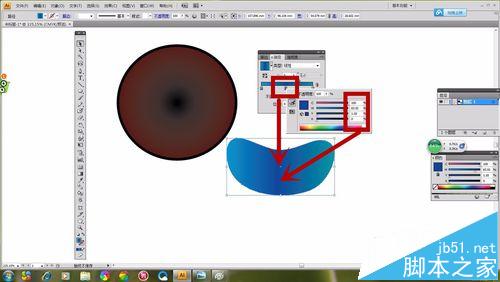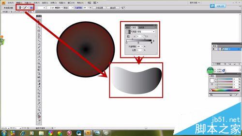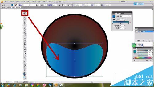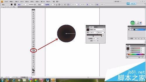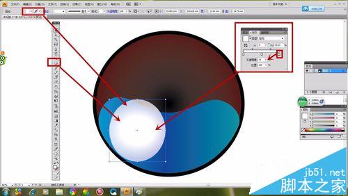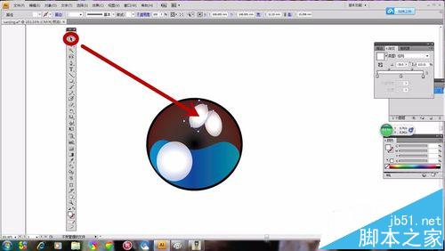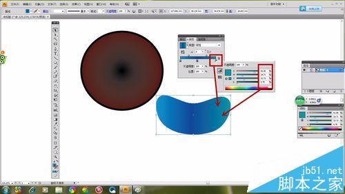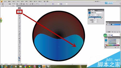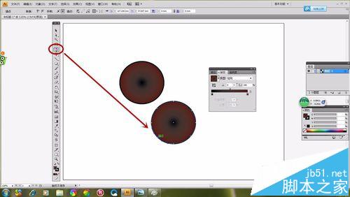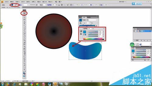 1、选择“椭圆形工具”如图所示画出一个圆形,选择“渐变工具”,然画出的“椭圆形”具有颜色渐变感。