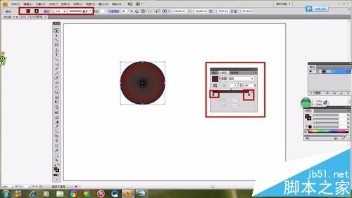 2、设置渐变的类型:径向 ;设置渐变的颜色:从里到外”黑“变成”深褐色“;设置描边:4xp