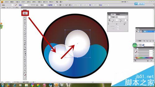 6、然后移动月牙形,如图所示,让2个图形重叠在一起,继续运用”直接选择工具“调整形状,让它们组合起来更合适。