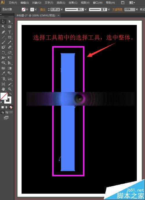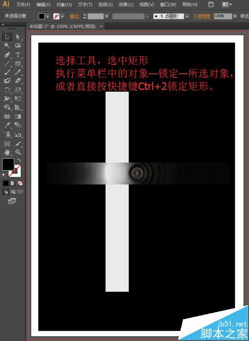 6、我们用移动工具时,会不小心将黑色的矩形移动,为了方便我们接下来的制作,我们将矩形锁定。选择工具箱中的选择工具,选中黑色的矩形,然后执行菜单栏中的对象—锁定—所选对象,或者直接按快捷键Ctrl+2锁定矩形。