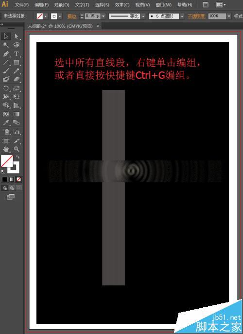 8、选择工具箱中的选择工具,选中所有的直线段,然后右键单击找到编组或者直接按快捷键Ctrl+G编组,我们将所有的直线段放到一个组中,如下图所示。