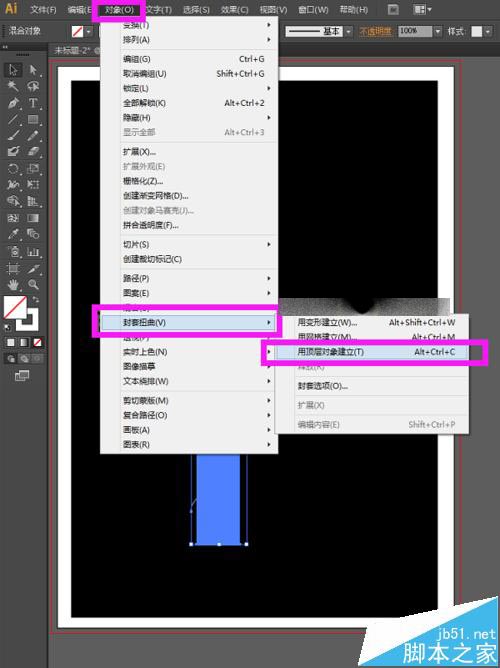 11、选中整体后,执行菜单栏中的对象—封套扭曲—用顶层对象建立,或者直接按快捷键Alt+Ctrl+C,如下图所示。