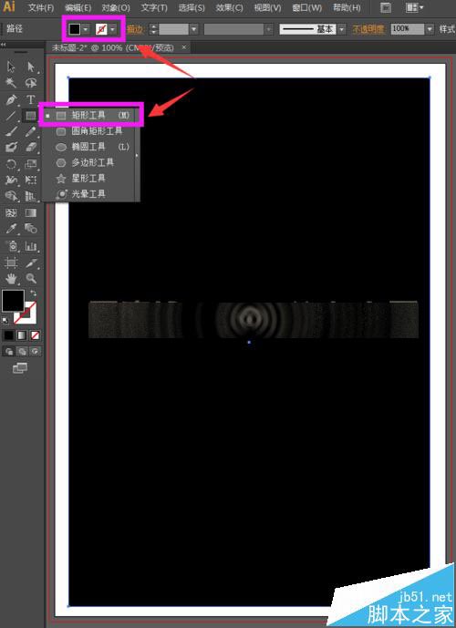 2、我们再来设置一个画布,我们画烟雾,烟雾是灰色的,如果画布是白色的那么可能看不清楚,因此我们制作一个黑色的画布背景。选择工具箱中的矩形工具,将填充设置为黑色,描边设置为无,画一个比A4纸张小一点的矩形,如下图所示。