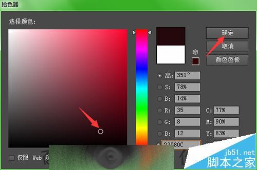 2、文档新建好后,可以看到在界面中背景默认的是白色的。这里需要把它的背景更改为想要的颜色。点击填充,把它的白色更改为一种深一些的颜色。这里选择为这种深红色。选择好后点击确定。