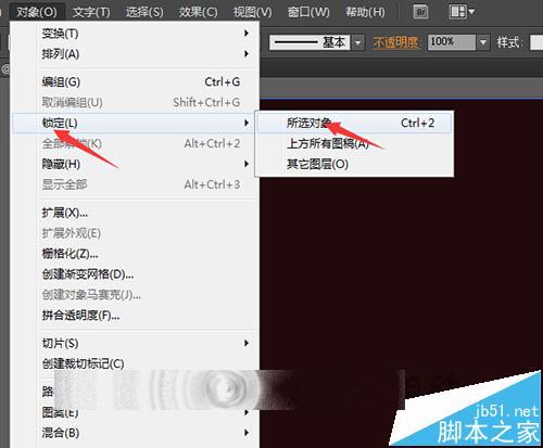 4、把背景设置好后,接下来就要把这个背景进行一个锁定。以免在制作的过程中背景发生移动。点击对象菜单下面的锁定。用鼠标移动至后面选择所选对象。这样就直接把这个背景进行了锁定。