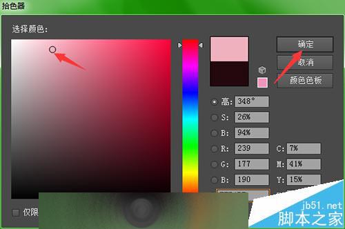 6、把图片拉入之后,这里需要先把它的颜色更改一下,这次所选的颜色要淡一些。就选择这种淡一些的粉色。选择好颜色后点击确定。接着再选择工具栏中的钢笔工具就可以沿着形状的边缘进行描出它的轮廓。