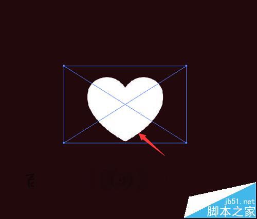 11、这时在界面中只留下刚才添加渐变的一个心形,选中它的一角,把它进行一个缩小。让它的形状不要太小。如果太大的话,做出来后的效果再调有些麻烦。把它缩小之后就可以把这个形状定义与符号。