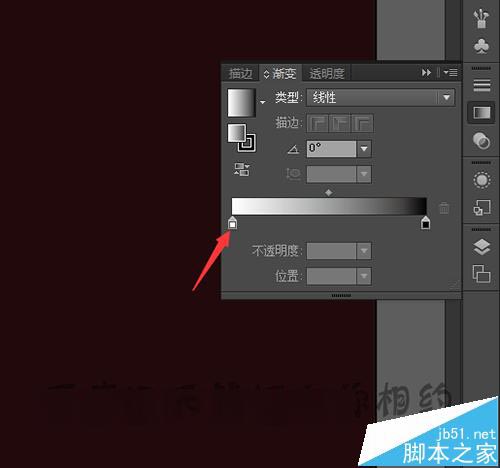 9、这里把它的颜色选择好后,需要把前面的色标也向后面移动一些。这里还需要点击工具栏中的渐变工具。把它的渐变再适当的拉长一些,让黑色显示的少一些。这里可以来移动上面的渐变来选择一个合适的大小。