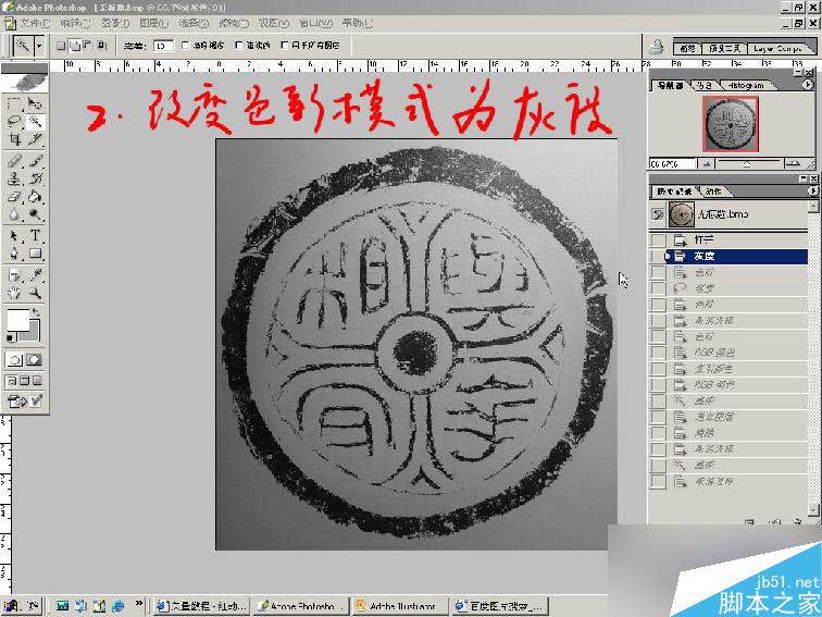 2、改变色彩模式为灰度