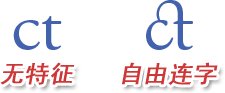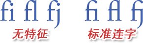 由上面的例子我们可以看出OpenType具有很大的优势,越来越多的字体都采用这个标准,中文字体也不例外。不过目前而言,大部分具有应用特征的OpenType字体都是英文,中文字体虽然也有OpenType标准,但极少具有能应用OpenType特殊特征的中文字体,即使有也大都只能对字母或数字有效,对于汉字却并无效果。如果相邻的汉字之间能够连笔,那确实是非常令人期待的,同时制作该字体的工作量之大也将是超乎想象的。计算一下,26个英文字母两两排列的总数是26×26=676种,也就说要设计676种连笔。而汉字的扫盲标准已经是1500字,日常用3500字,GB码包含的汉字数量为6763字,而汉字总数到底是多少?大部分说法倾向于1994出版的《中华字海》,其中收录了87019字……