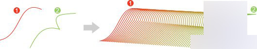 可以在两个或更多的路径之间产生过渡,如下左图,这个功能常被用来制作一些“花里胡哨”的大面积线段效果,如下右图。