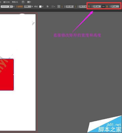 6、如果你对设置的矩形大小不满意,我们也可以直接在矩形工具的属性栏中修改矩形的大小,如下图所示。