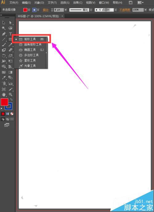 2、选择工具箱中的矩形工具,矩形工具位于左侧工具箱的中间偏上的位置,它的快捷键是“M”如下图所示。