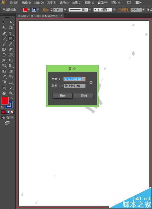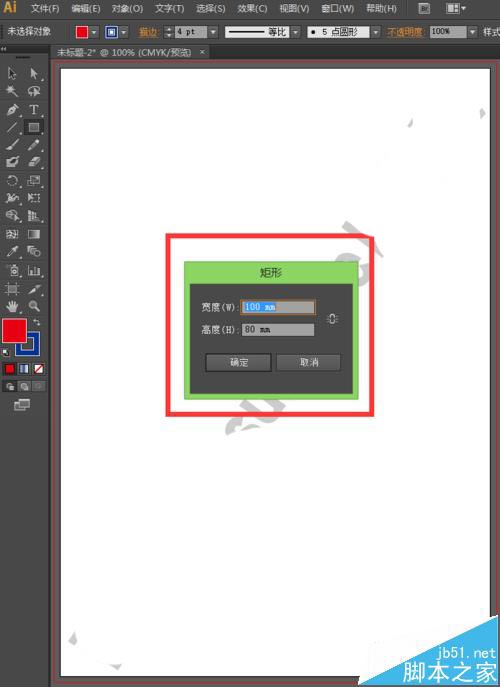 4、我们可以直接在弹出的矩形选框中设置我们想要的矩形大小,小编在这里就将宽度设置为100㎜,高度设置为80㎜,如下图所示。