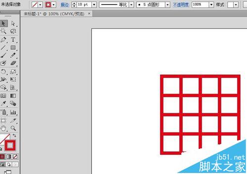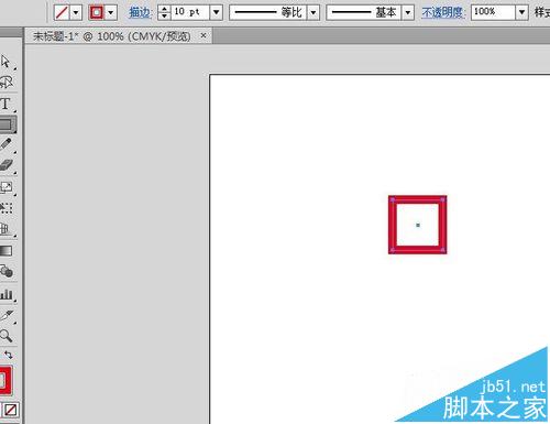1、只使用红色描边,矩形工具(M),按住shift键绘制一个正方形。选择工具(V),按住Alt复制一个正方形,要和前面的连在一起。Ctrl+d ,连续复制2次,一共四个正方形。