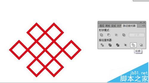 5、使用路径查找器的轮廓,在窗口-路径查找器。原来的图形都去色了,重新描边。取消编组你会发现,相交的地方都断掉变成线段了。
