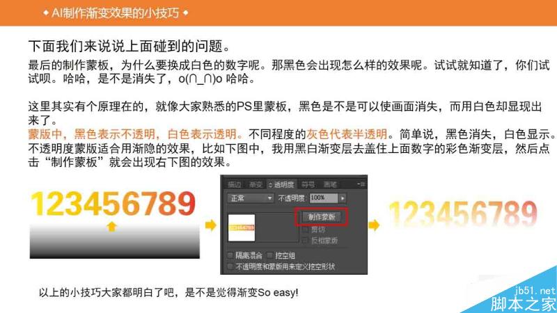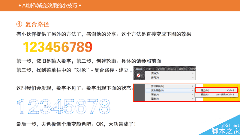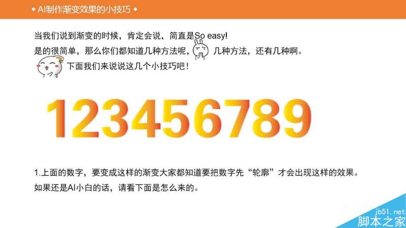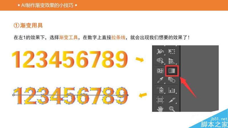 使用AI制作渐变效果为什么还要单独弄一个教程呢,因为个人觉得AI的渐变和PS的差异较大,很多人没搞明白AI的渐变到底是如何使用的。所以找了个小教程科普一下,希望对脚本之家的新手朋友们有所帮助!