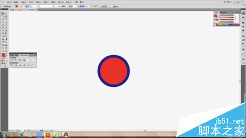 1、先画两个不同颜色的同心圆,不同颜色便于区分要留下的部分,这里要留下蓝色