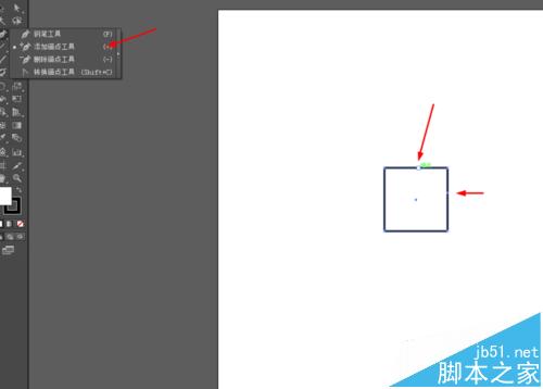 3、选择添加锚点工具在正方形添加两个锚点,如图所示