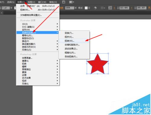 3、然后选择星星的图形,在菜单栏上选择效果的扭转,如图所示