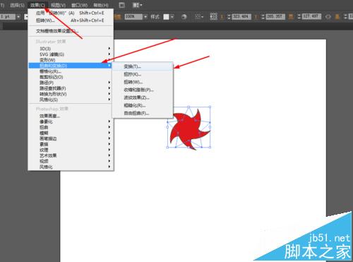 4、再选择星星的图形,在菜单栏上选择效果的变换,如图所示