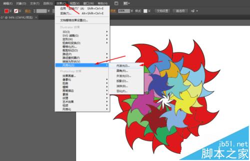 6、接着选择星星的图形,在菜单栏上选择效果添加外发光,如图所示
