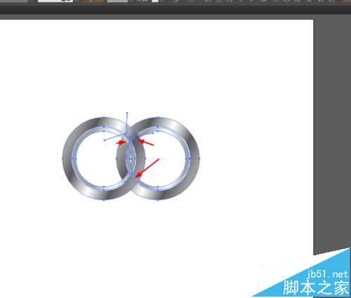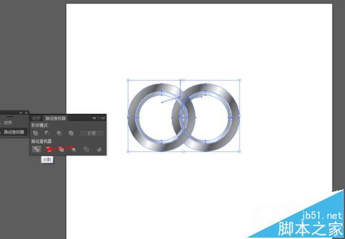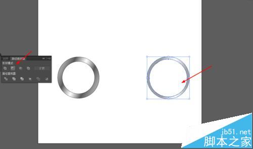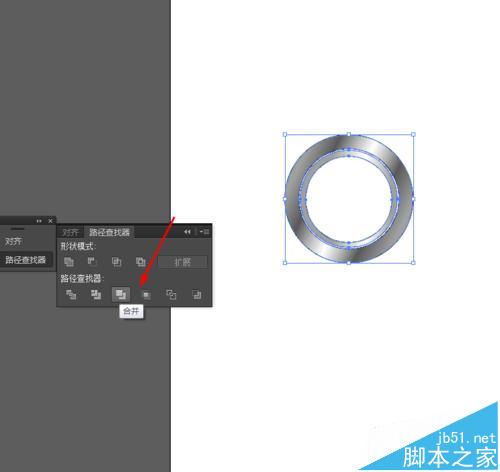 6、接下来一个圆形和圆形放在一起,然后在路径查找器,选择合并,如图所示