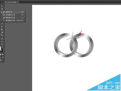 7、把合并的圆形按alt复制一个圆形,选择钢笔工具,用钢笔勾出一条路径,如图所示