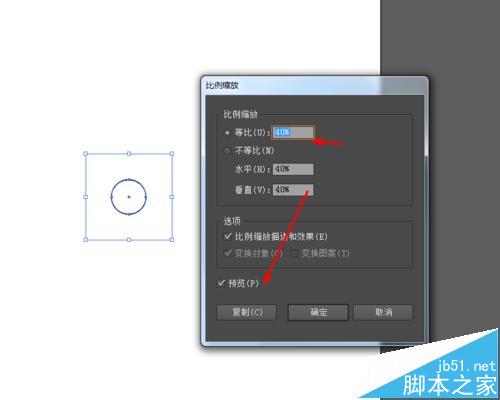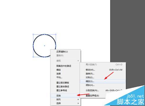 3、接着选择圆的图形,点击右键选择变换缩放40%,移动到左上角,如图所示