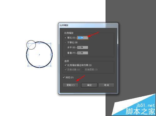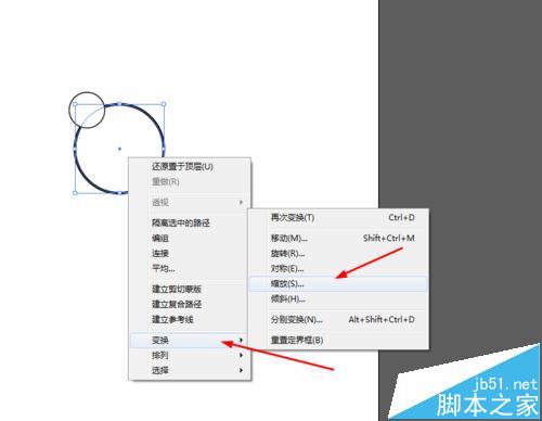 4、选择大的圆形,点击右键变换缩放113%,移动到最上面,如图所示