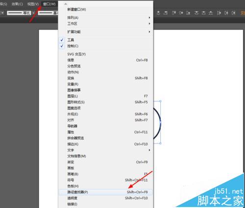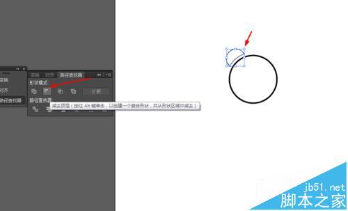 5、接着按住shift选中小的圆形和大的圆形,然后选择路径查找器点击减去顶层,如图所示
