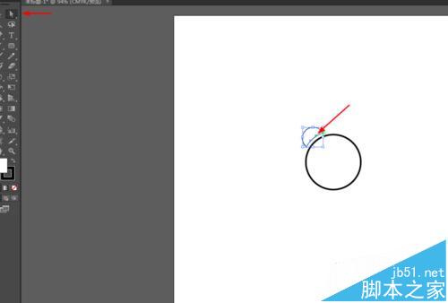 6、选择直接选择工具,点击半圆的锚点,按delete删除键,如图所示