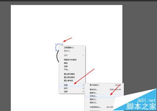 7、接着选择半圆的图形,点击右键选择变换对称,再移动到另外一边,如图所示