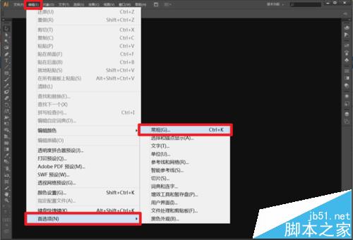 2、接着点击【编辑】-【首选项】-【常规】,也可以直接按下快捷键【Ctrl+K】
