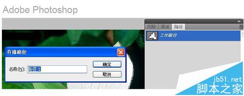 2、把画出来的路径转为普通路径(未转换之前“工作路径”四个字是倾斜的),方法是双击路径面板中的工作路径,在跳出的存储路径对话框中直接点击确定,可以看到原来的倾斜字体的“工作路径”变成了立正的“路径1”