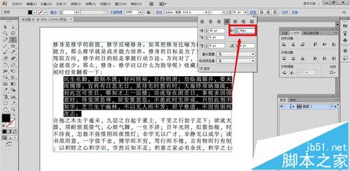 2、点击”段落面板“,在对齐方式下面的就是左右缩进的设置选项