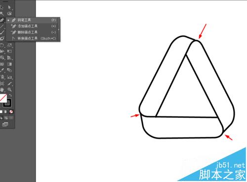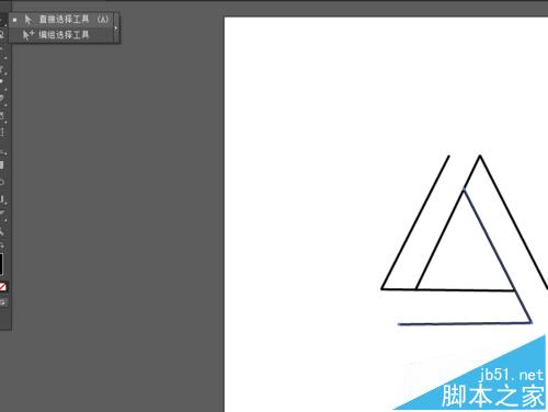 2、然后选择直接选择工具,在三角形图形添加锚点,把多余的路径删掉,如图所示