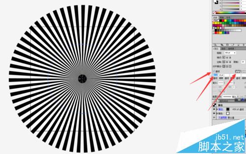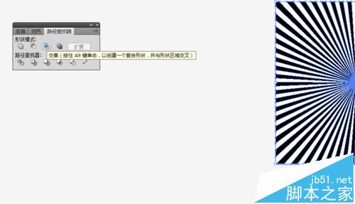 8、同时选中放射线和矩形,打开路径查找器,shift+ctrl+f9,在形状模式中点击“交集”,就得到了修好的放射图背景,