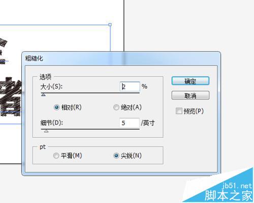 8、如果觉得太过规整,可以通过效果-扭曲和变换-粗糙化调节,这个数值不一样要和下图一样,自己调节一下,选择合适的。