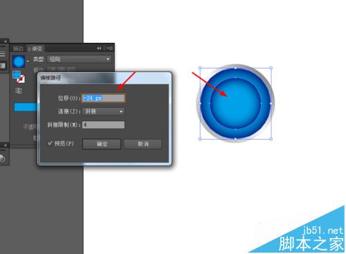 3、再选择圆形到对象—路径—偏移路径,并添加渐变颜色,如图所示