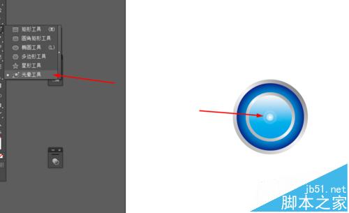 5、再选择光晕工具,在圆形上面画一个光晕,如图所示