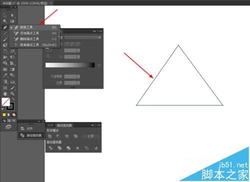 1、在Ai软件中,新建一个800*800的文档,选择钢笔工具,勾出一个三角形,如图所示