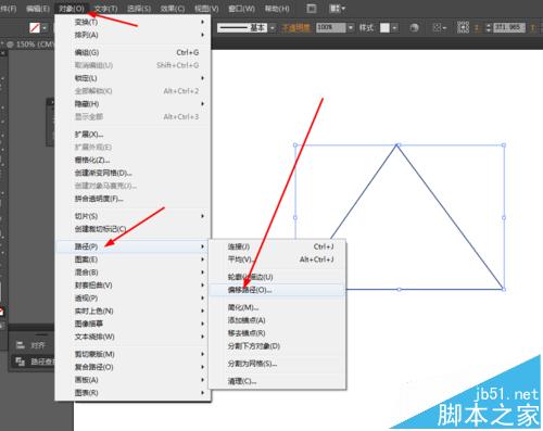 2、然后选中三角形到对象—路径—偏移路径,如图所示