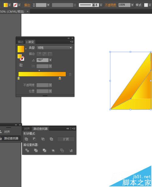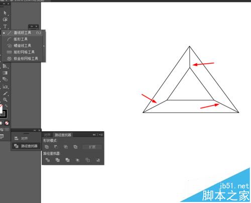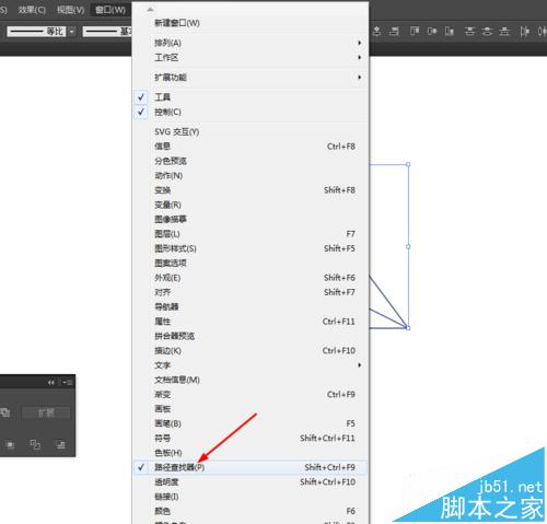 4、选中直线和三角形到窗口—路径查找器—点击分割,如图所示