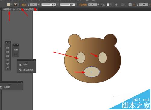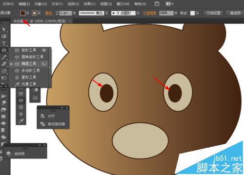 3、选择椭圆工具,画三个椭圆图形,并填充颜色,描边改为1pt,如图所示