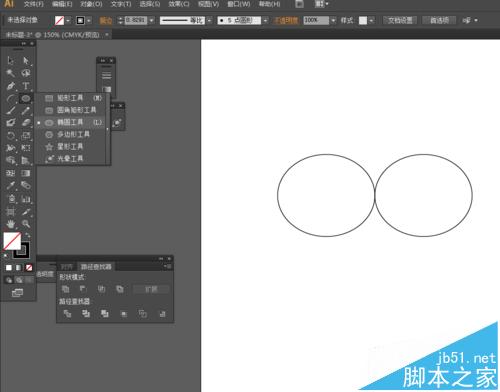 1、在Ai软件中,新建一个800*800的文档,选择椭圆工具,画两个椭圆图形,如图所示