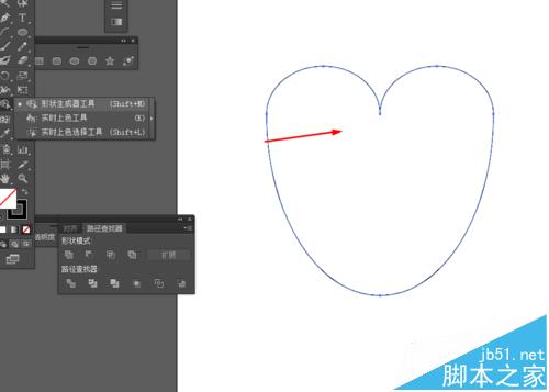 3、选择形状生成器工具,把弧线和椭圆形生成一个图形,并填充颜色,如图所示