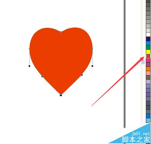 13、用鼠标左键和右键分别点击软件右边的红色颜色块,将心形的轮廓和内部都填充为红色。这样,一个圆形就转变成一个红色的心形了。