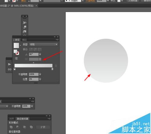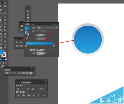 5、接下来选择椭圆工具,画一个正圆图形,并添加渐变颜色,如图所示